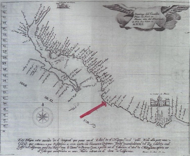 O mapa do piloto e cartógrafo Domingo del Castillo de 1541 (Figs. 2 e 4) tem gravado o porto em questão com o topónimo Santo, e a obra “Apuntes para la Historia de la Geografía de México”, por don Manuel Orozco y Berra,Tomo 11, Núm.1, México, regista ser Porto Santo e Porto de Navidad designações do mesmo porto. Transcrevo: “… Puerto Santo, como lo dice Domingo del Castillo, es el mismo puerto de Navidad, e idéntico al Cihuatlán…»(11).